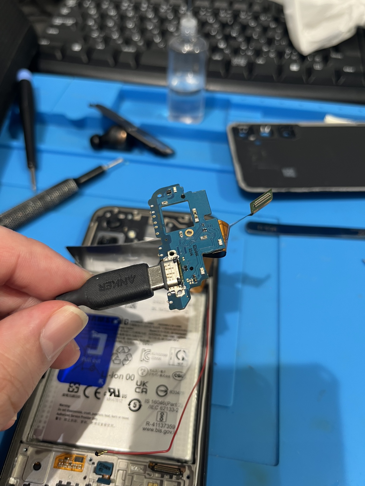 Samsung GalaxyA54(ギャラクシー)のコネクタ部分修理ならデータそのまま、即日修理の「スマホ修理工房渋谷店」へ!