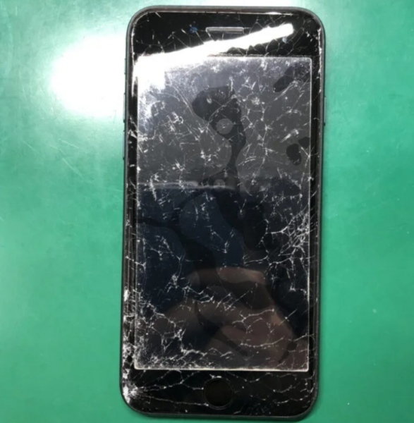 全体がしっかり割れてしまい、画面もほぼ映らないほど破損しています