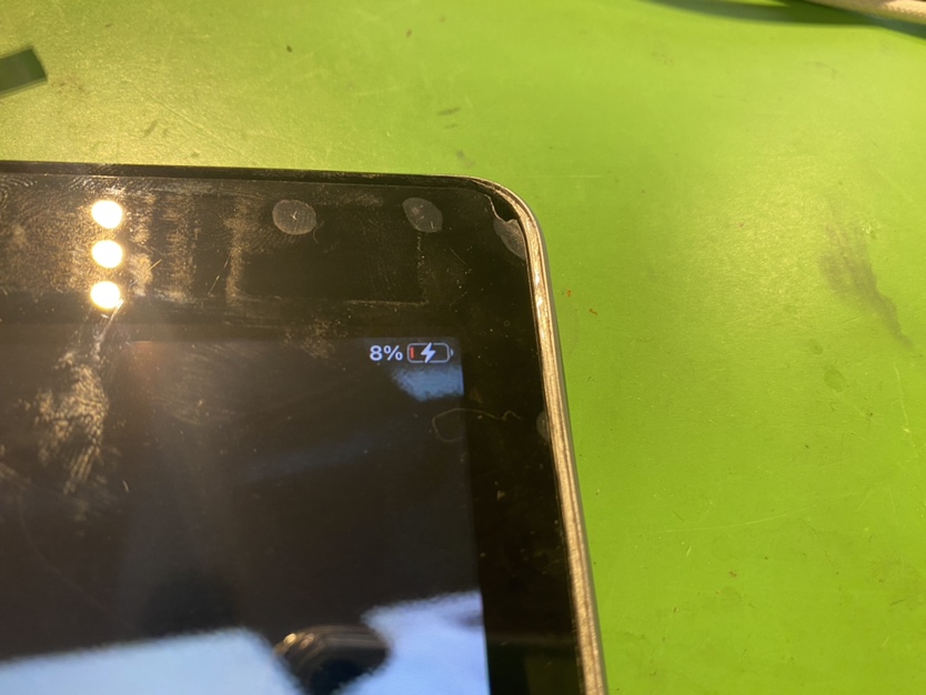 お持ち込みいただいた時は、ケーブルを挿すと電池マークのみで起動しない状態でした。