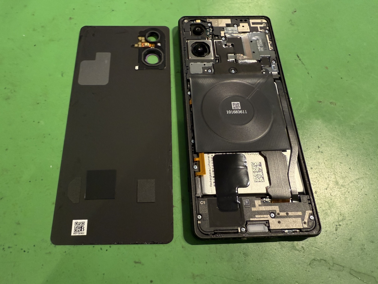 Xperia 5Ⅴは従来の5シリーズ同様に背面から分解していきます。