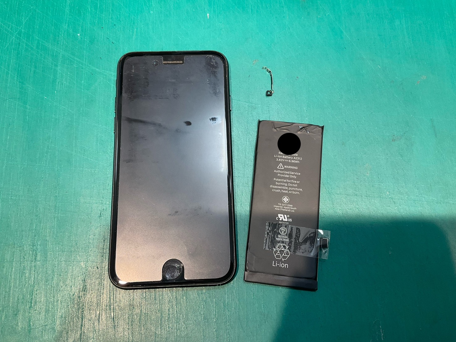 バッテリー持ちもかなり悪いとのお話しもあり、同時修理であれば割引可能ということでバッテリーも併せて交換をさせていただきます。