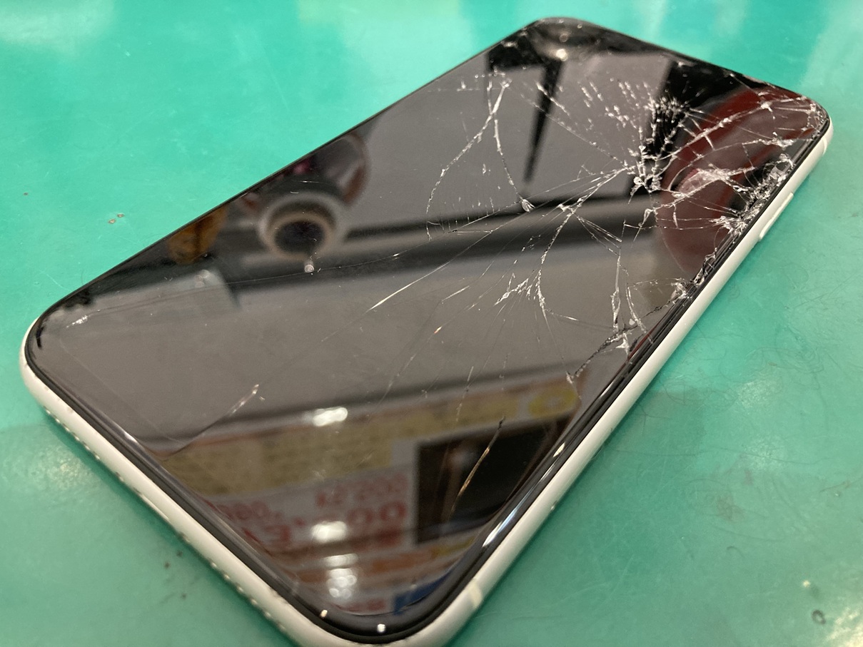 ガラスが割れ、画面も真っ暗で何も表示できない状態でした。