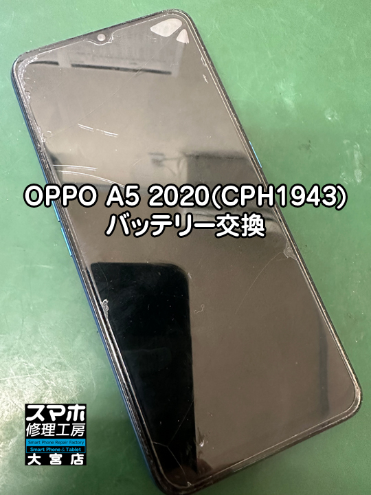 <OPPO A5 2020(CPH1943)バッテリー交換修理>