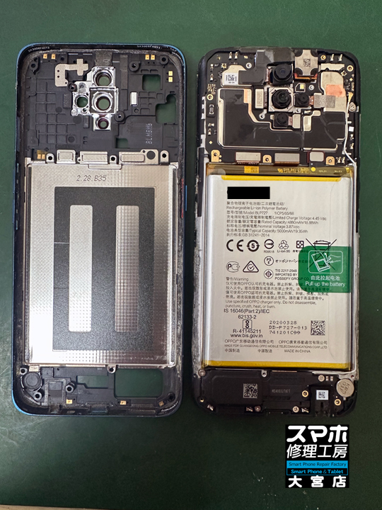 OPPO A5 2020(CPH1943)のバッテリー交換修理です。