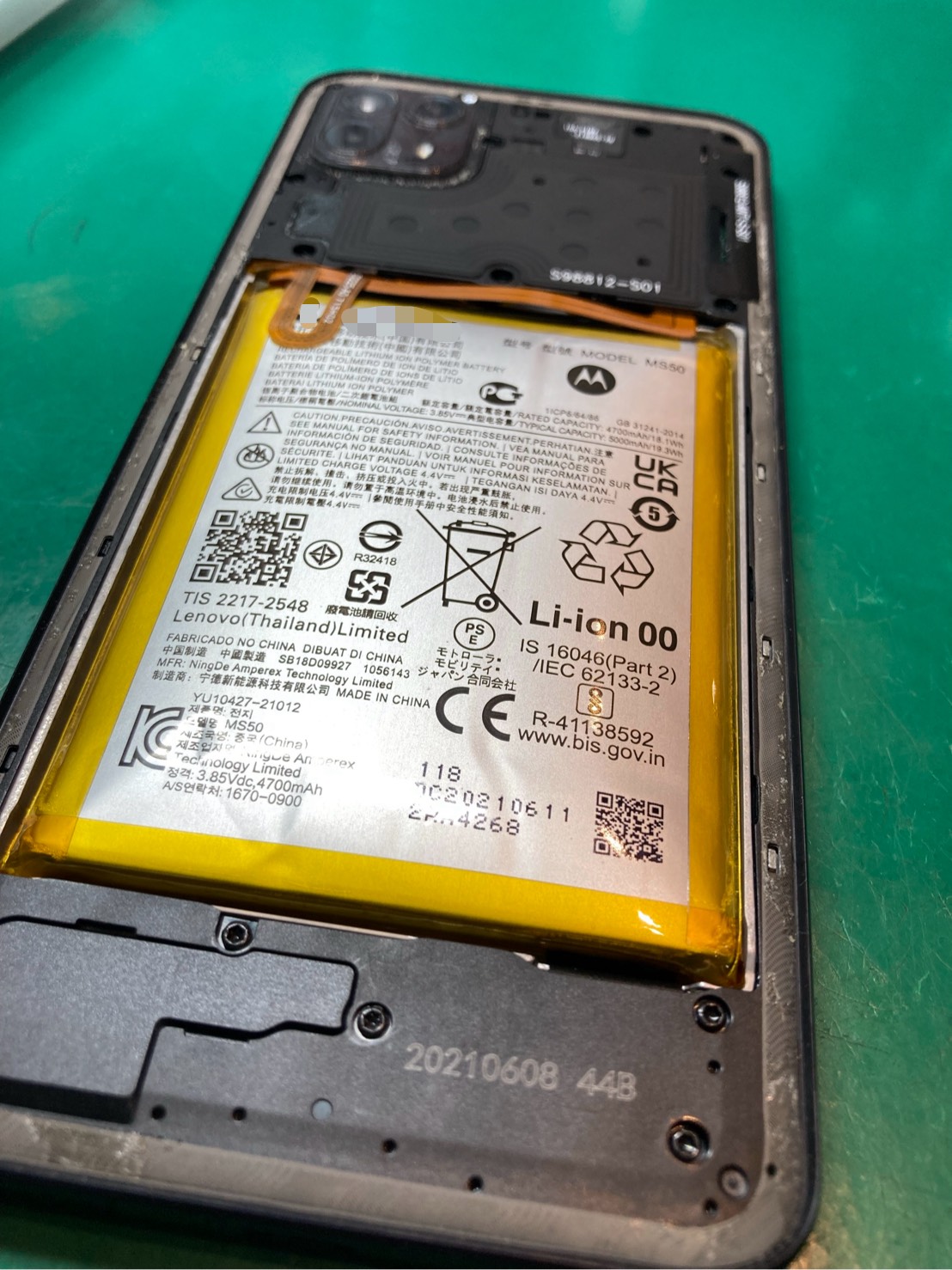 本日はMotorola moto G50 5Gのバッテリー交換修理を行いました!