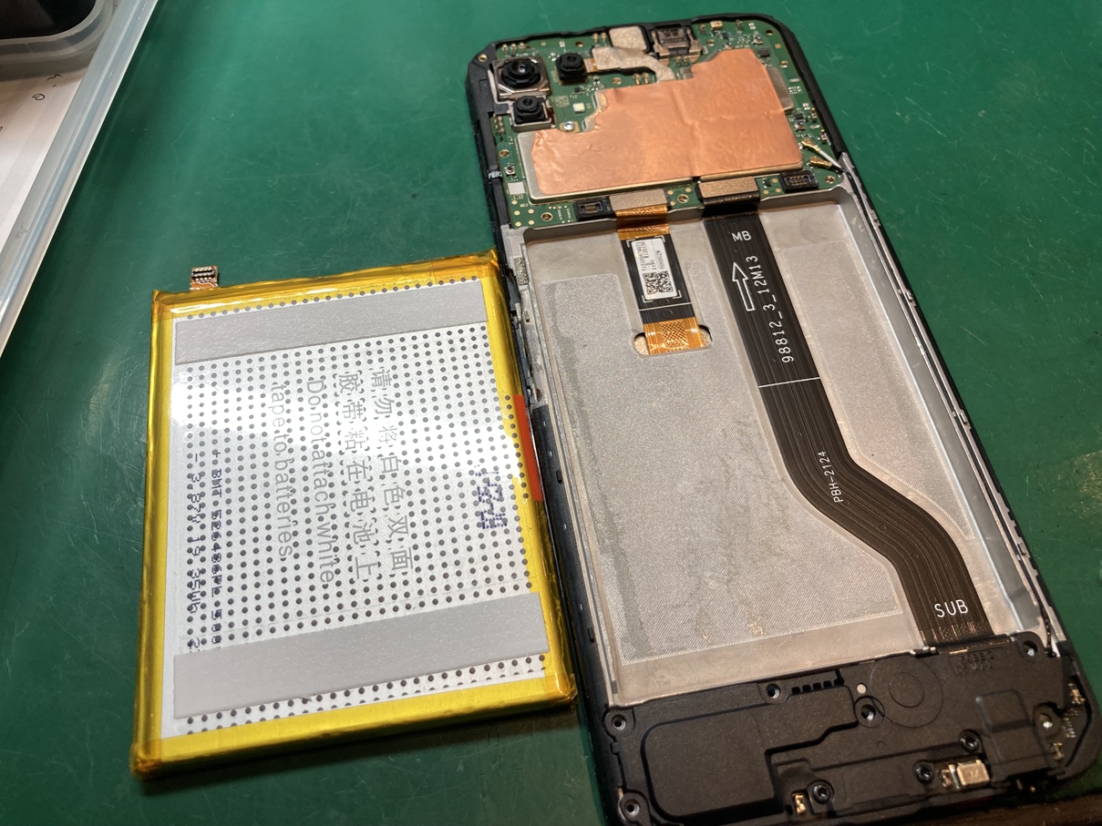 バッテリーが膨張して背面パネルが剝がれかかっている状態でした。