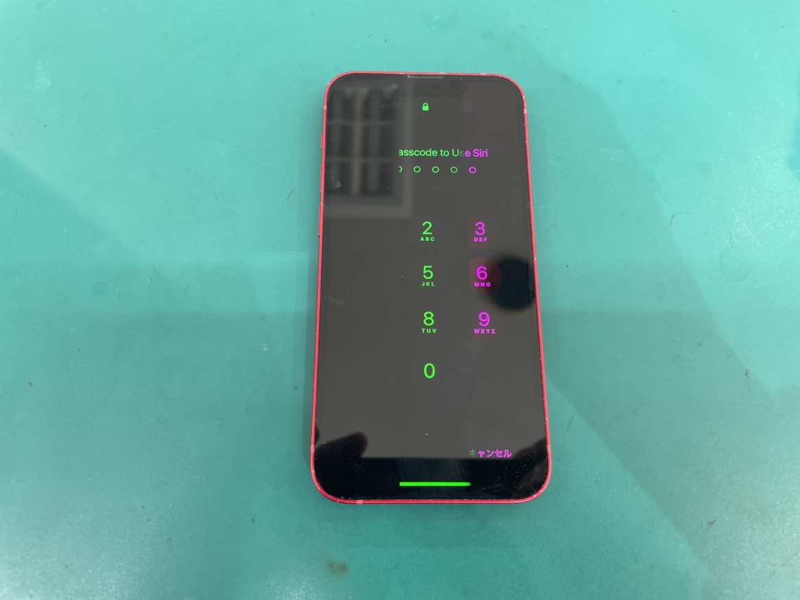 iPhone14机にぶつけてしまい画面が赤と緑になってしまったと