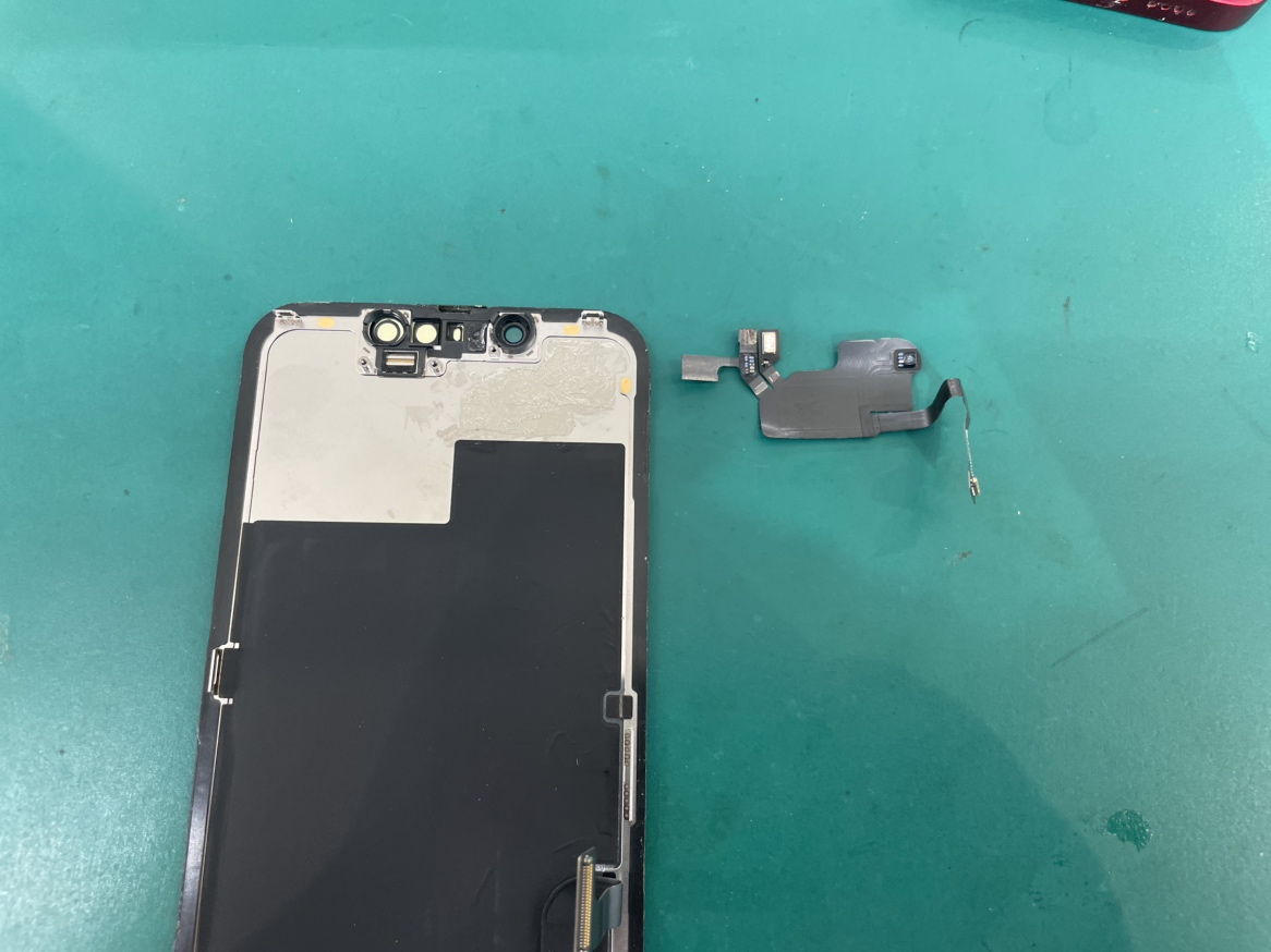 壊れてしまった液晶画面からセンサーケーブルを取り外して新しい画面へと移植を行います。