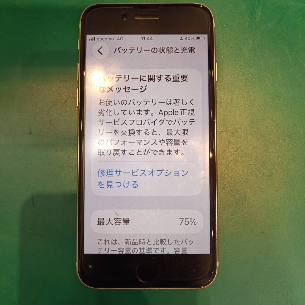 本日はiPhoneSE3(アイフォンSE3)のバッテリー交換修理を行いました!