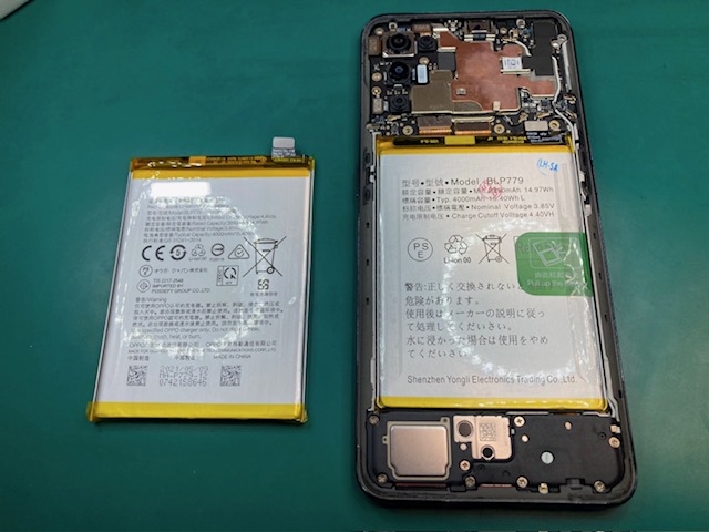 今回は、お隣の松山市からお越しのお客様よりOPPO Reno5 Aのバッテリー交換のご依頼をいただきました。