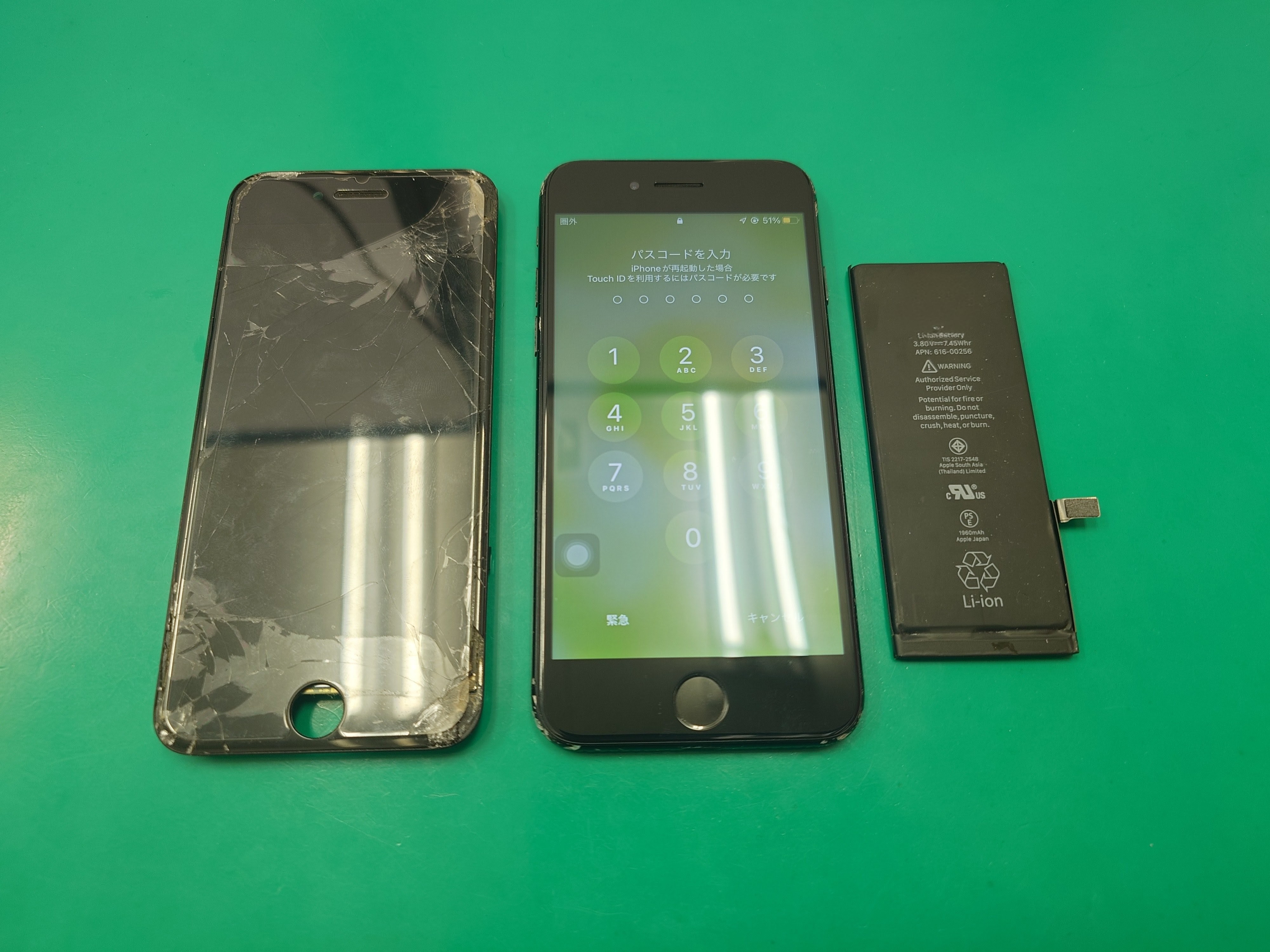 バッテリーと画面パネルの交換で修理が可能なことをお伝えしご承諾をいただけましたので作業を継続します。