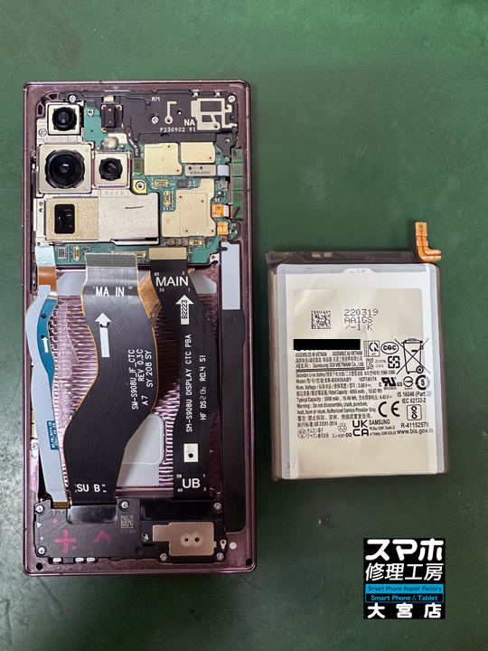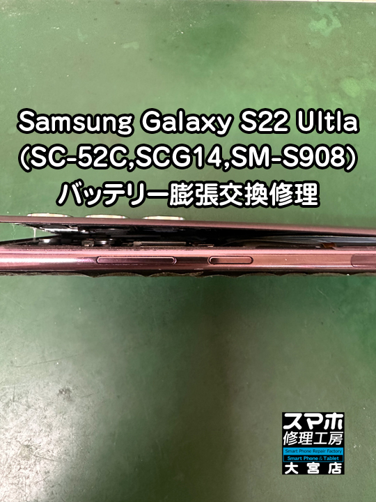 Samsung Galaxy S22 Ultra (SC-52C,SCG14,SM-S908)のバッテリー膨張交換修理です。