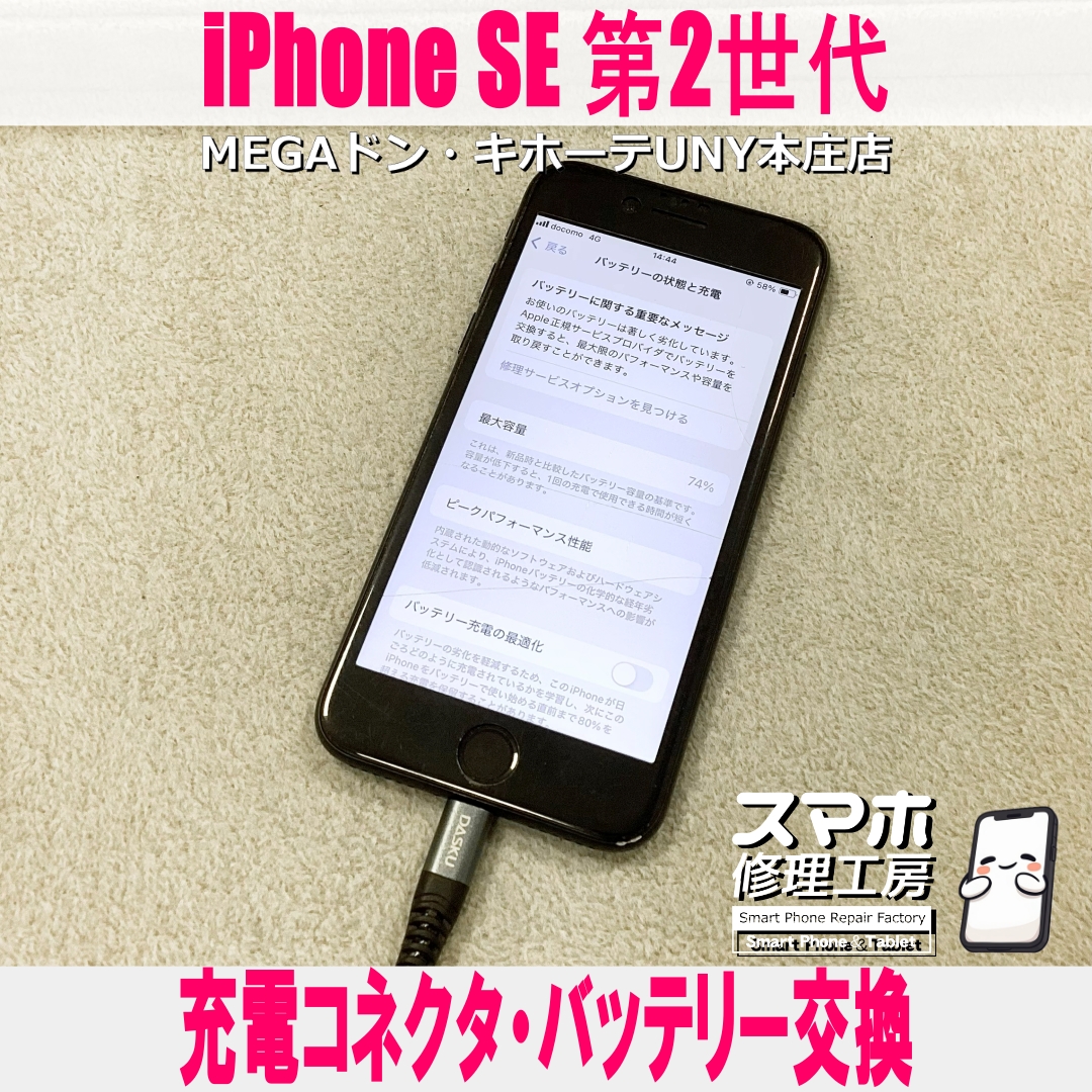 iPhoneSE第2世代(アイフォンエスイーツー)の充電コネクタ・バッテリー交換のご依頼になります💪