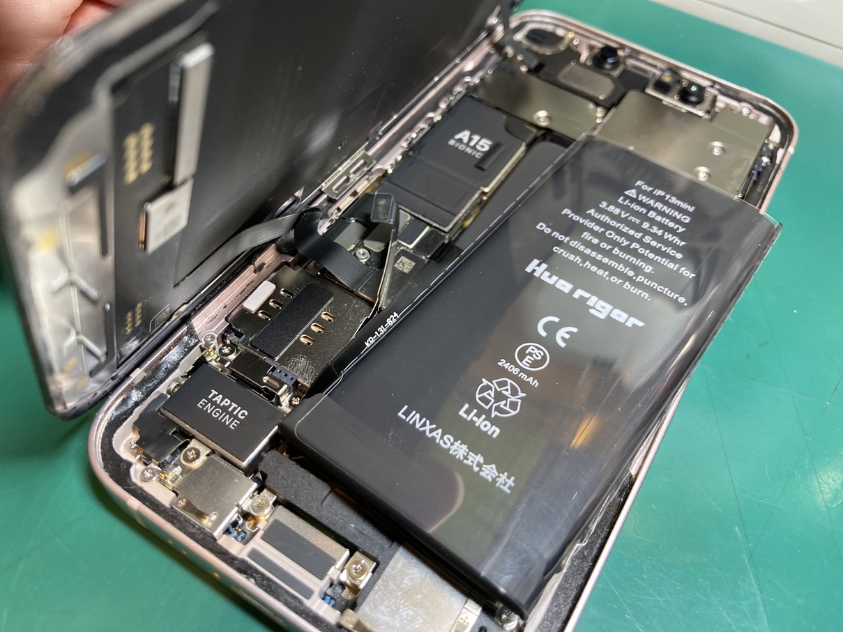 本日はiPhone 13 mini(アイフォン13ミニ)のバッテリー交換修理を行いました!