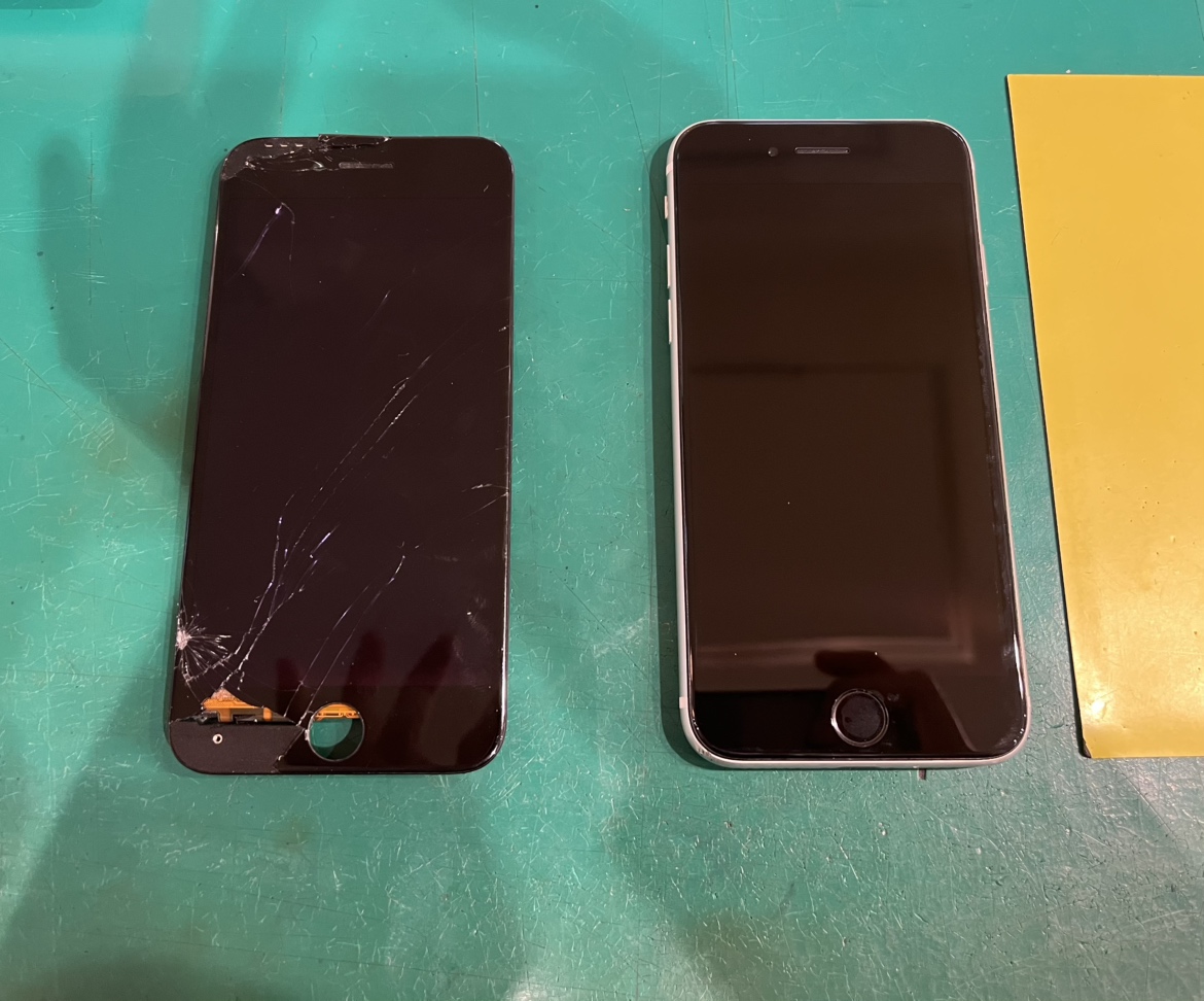 iPhone SE3 のガラス割れし、ガラスも欠損していまっているためご依頼いただきました。