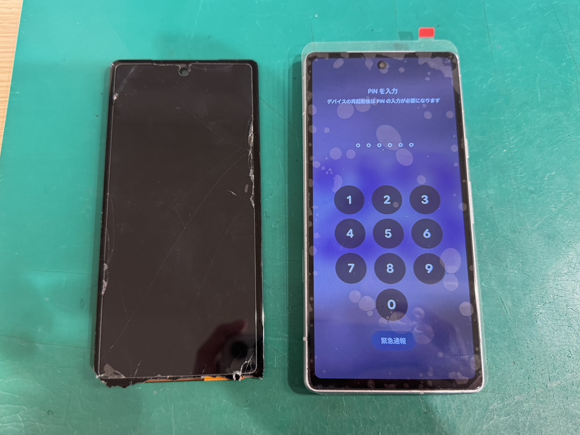 Pixel7aでガラス割れに加え、タッチ不良や表示に黒い線・チラつきが出る状態でした。