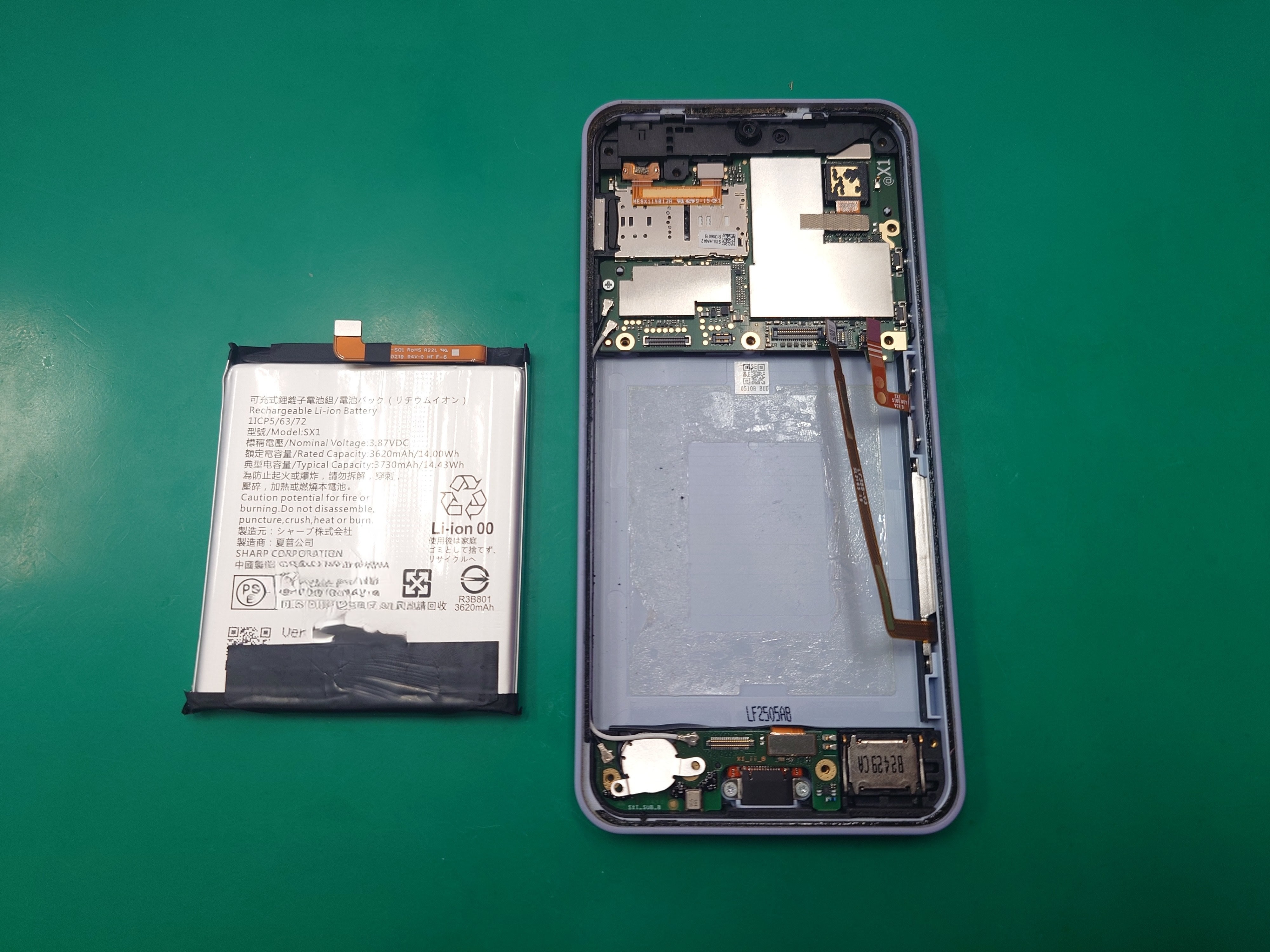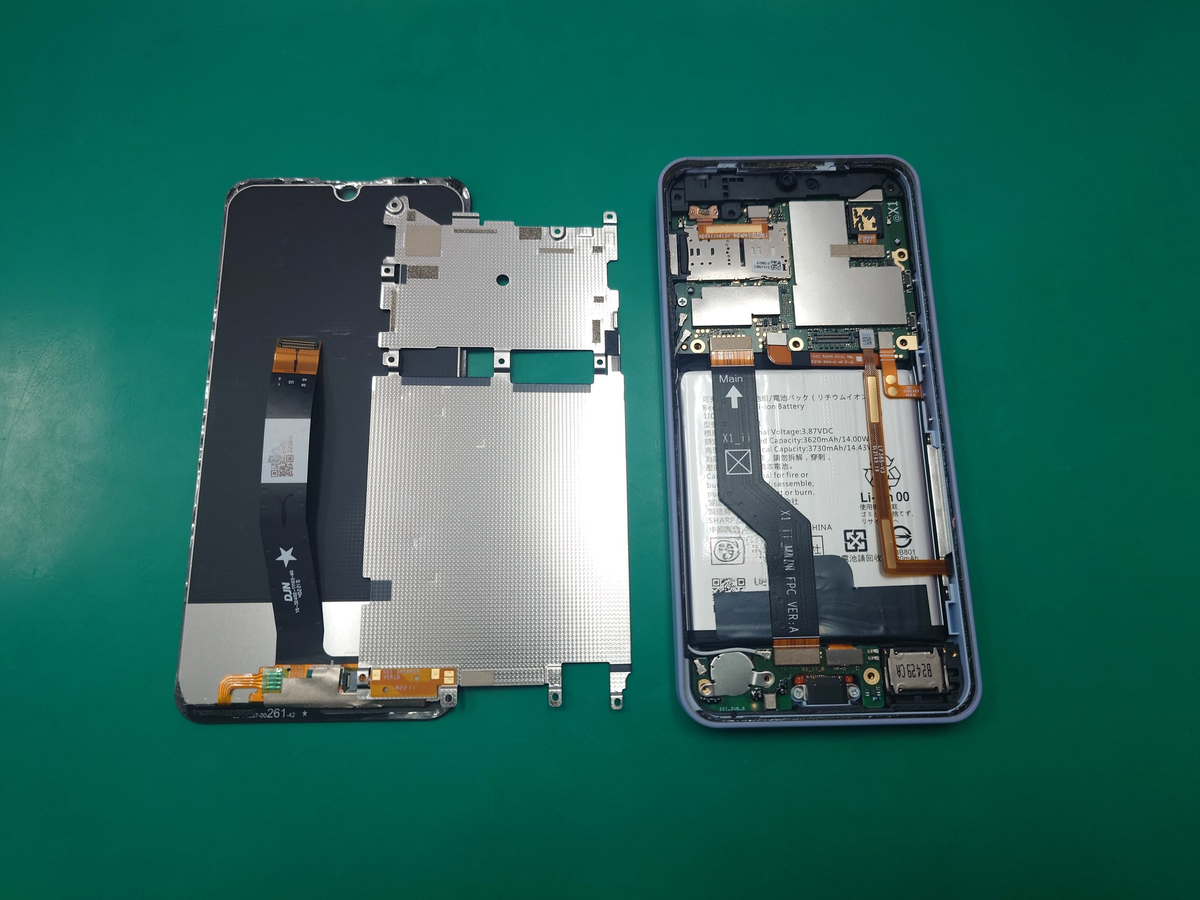 画面側から分解してパネルプレートも外すとバッテリーが見えます。