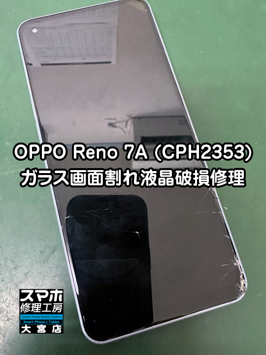 <OPPO Reno 7A (CPH2353)ガラス画面割れ液晶表示不良修理>
