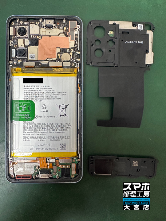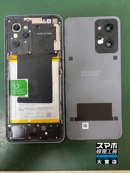 OPPO Reno 7A (CPH2353)のガラス画面割れ液晶表示不良修理です。