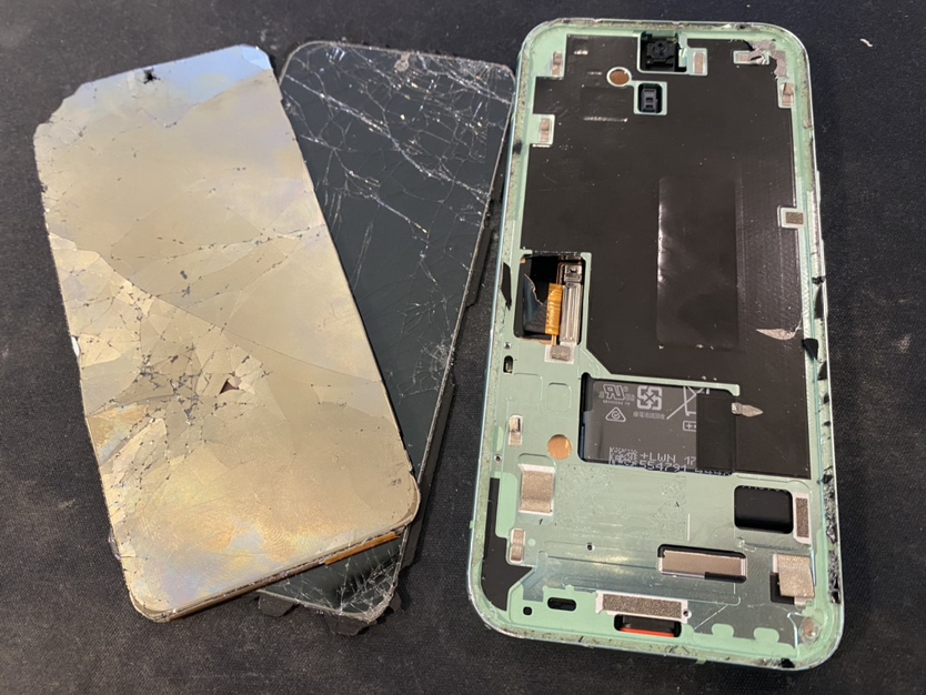 仕事中に高所から落として、画面が割れてしまったとのことでした。