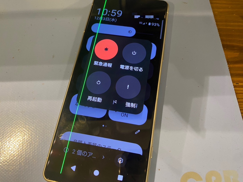 特に落としたりはしていないようですが、画面に緑の線が入ってしまったとのことでした。