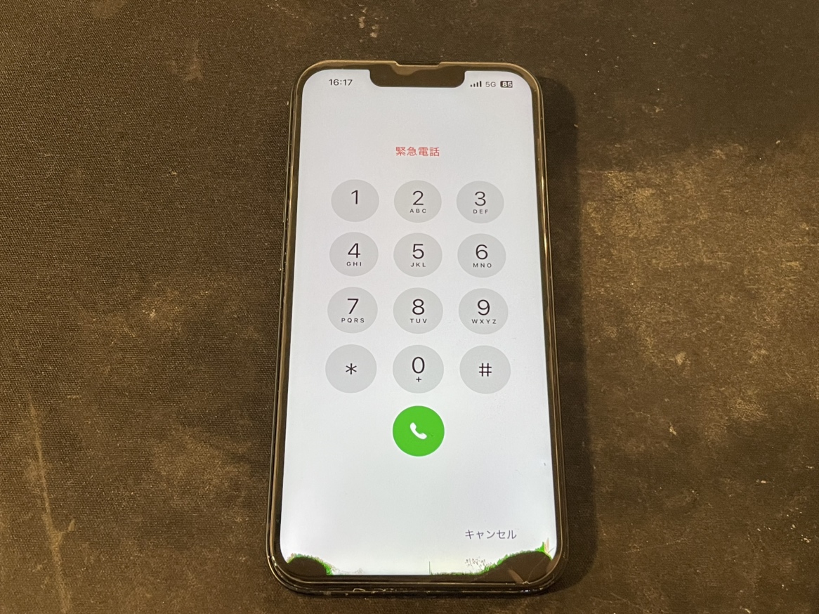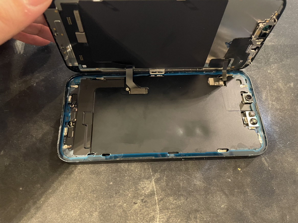 今回はiPhone14 を落としてしまい画面の下側に黒いシミが出来てしまったとのことで