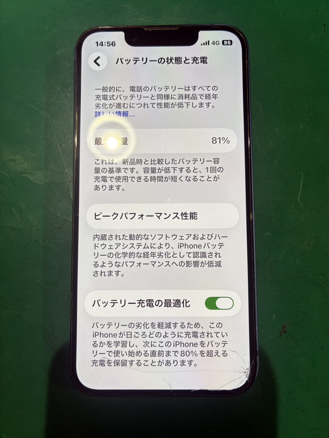 設定画面で確認したところ最大容量が81%まで低下していました。