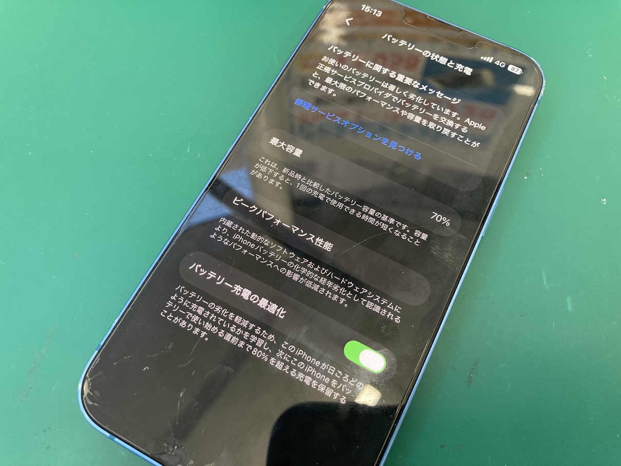 本日はiPhone 13(アイフォン13)のバッテリー交換修理を行いました!