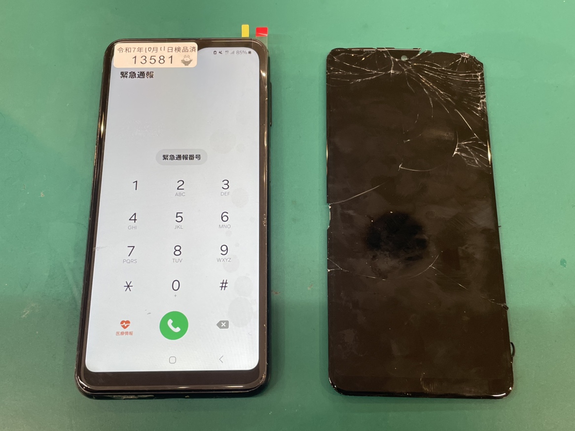 Galaxy A23の画面が割れてしまったと横浜市内より