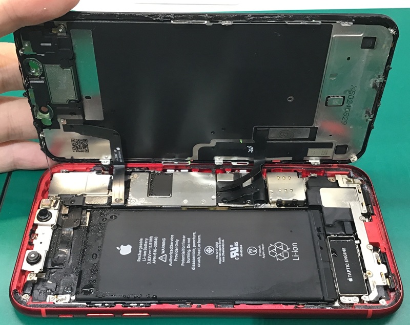 「電源が入らなくなった」「リンゴマークがついたり消えたりする」 そんな状態でも諦めないでください。当店では、専門技術を持ったスタッフが端末を分解し、基板の洗浄・乾燥作業を行い回復に尽力致します。