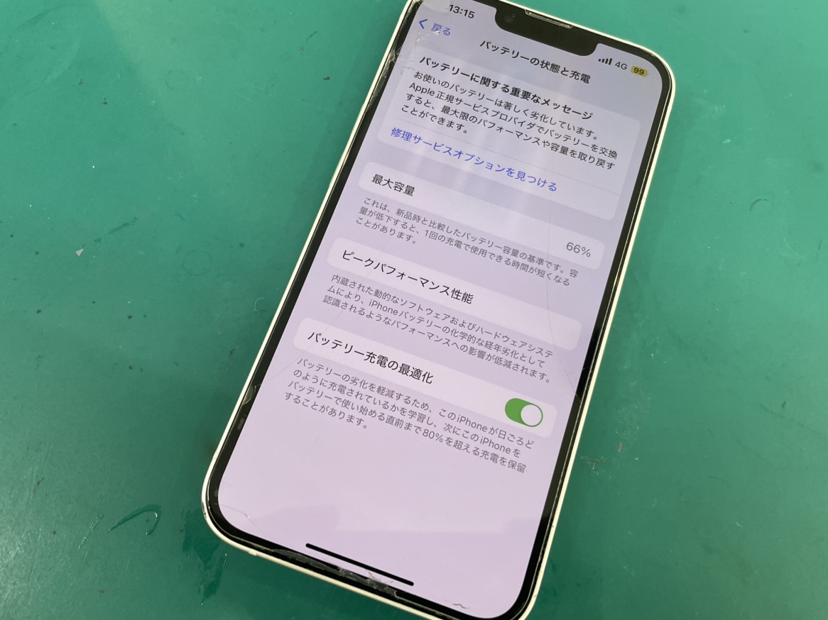 iPhone13のバッテリーの減りが早く半日程度しか持たないとの事で