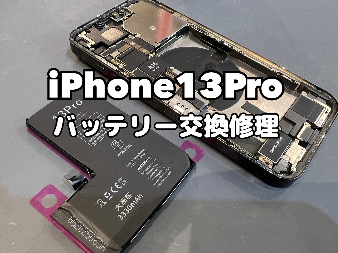 iPhone13Pro(アイフォン13プロ)のバッテリー交換修理ならデータそのまま、即日修理の「スマホ修理工房水戸オーパ店」へ!