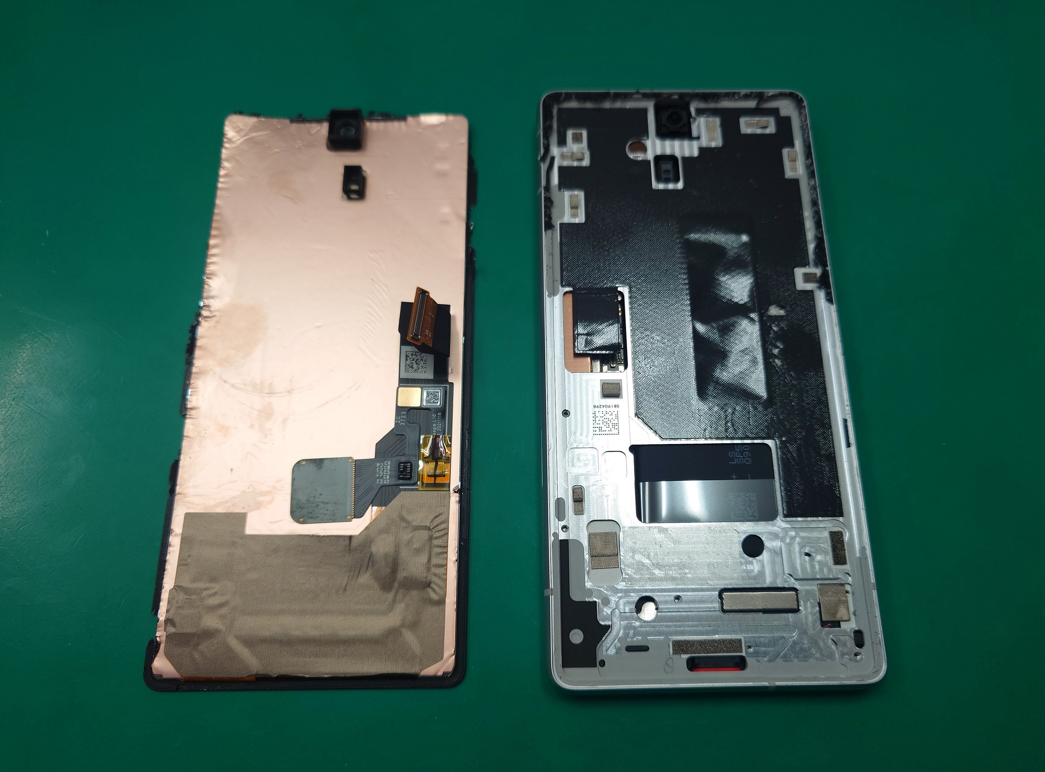割れたガラスに注意して画面を取り外します。