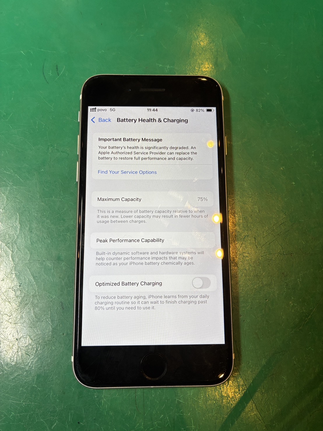 バッテリーの状態も確認してみると、最大容量が75%という状態でした。