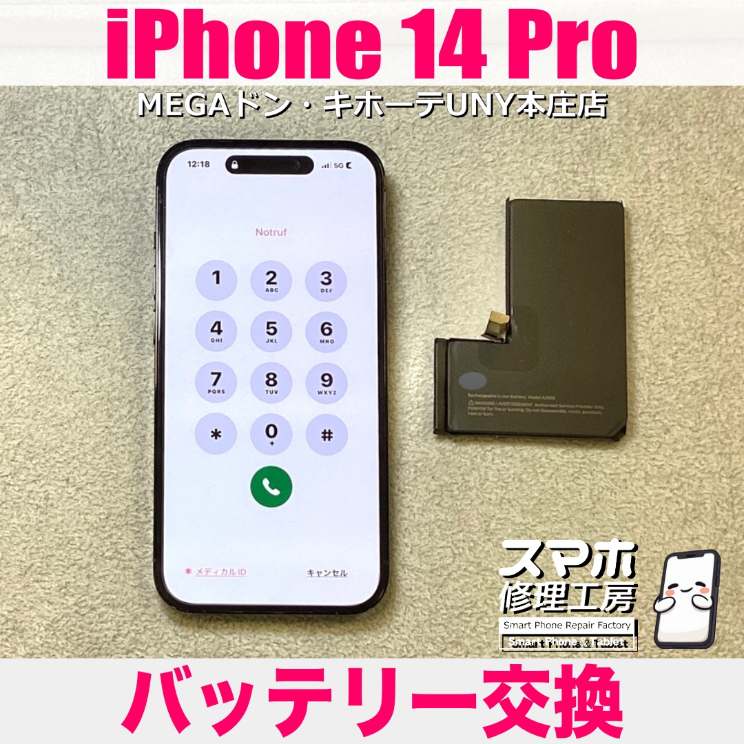 iPhone14Pro(アイフォンフォーティーンプロ)のバッテリー交換のご依頼になります💪