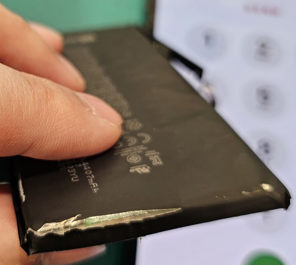 開けてみたら、バッテリーが膨張して破裂している状態でした😢