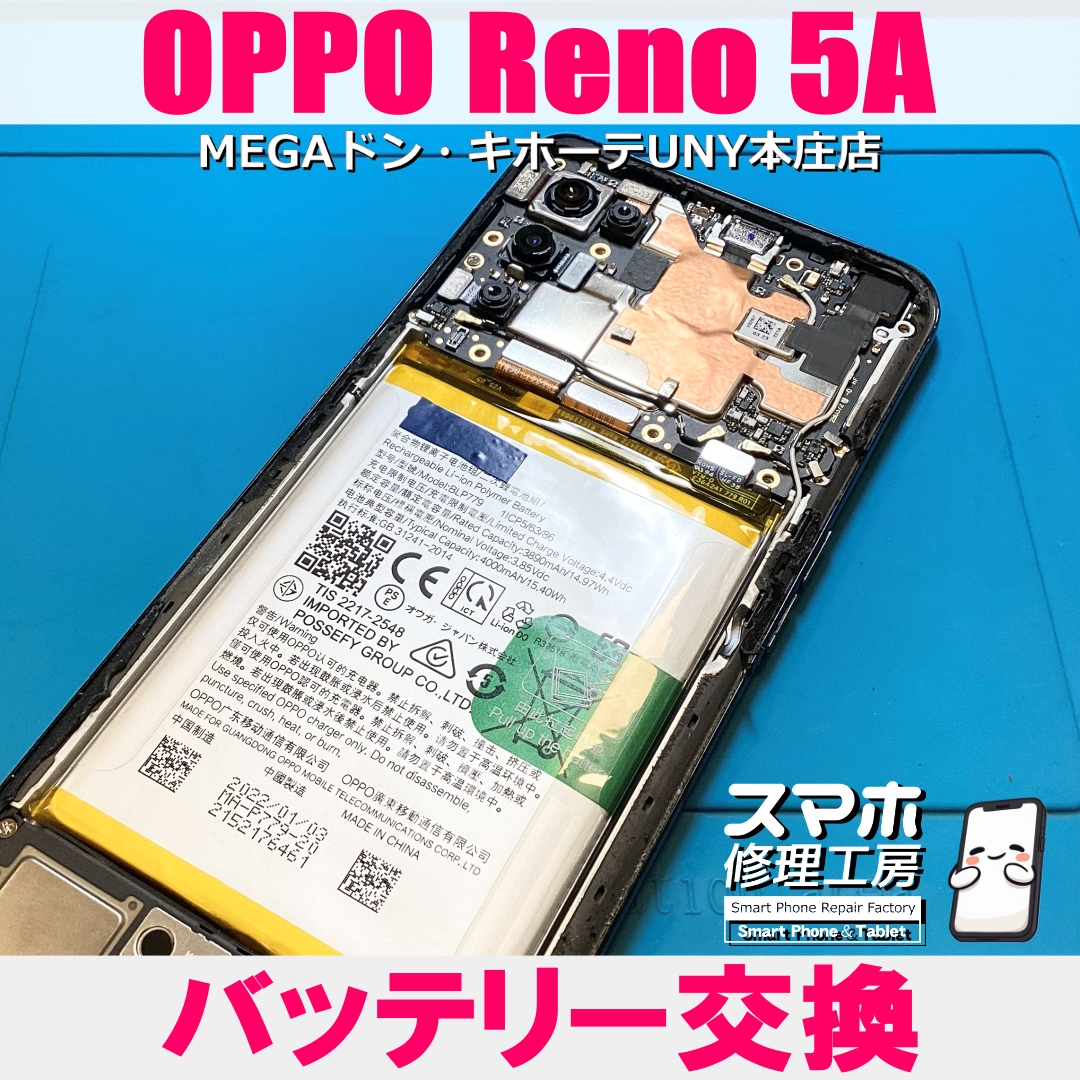OPPO Reno 5A(オッポリノファイブエー)のバッテリー交換のご依頼になります💪