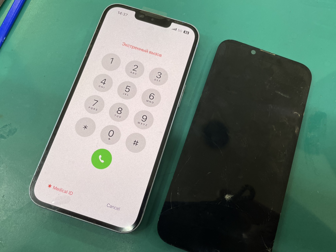 iPhone14Plusの上に固いものを落としてしまい液晶が壊れたとの事で