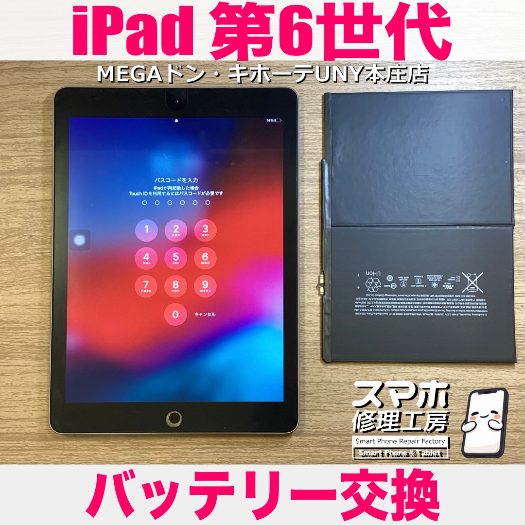 iPad 第6世代(アイパッドシックス)のバッテリー修理のご依頼になります💪