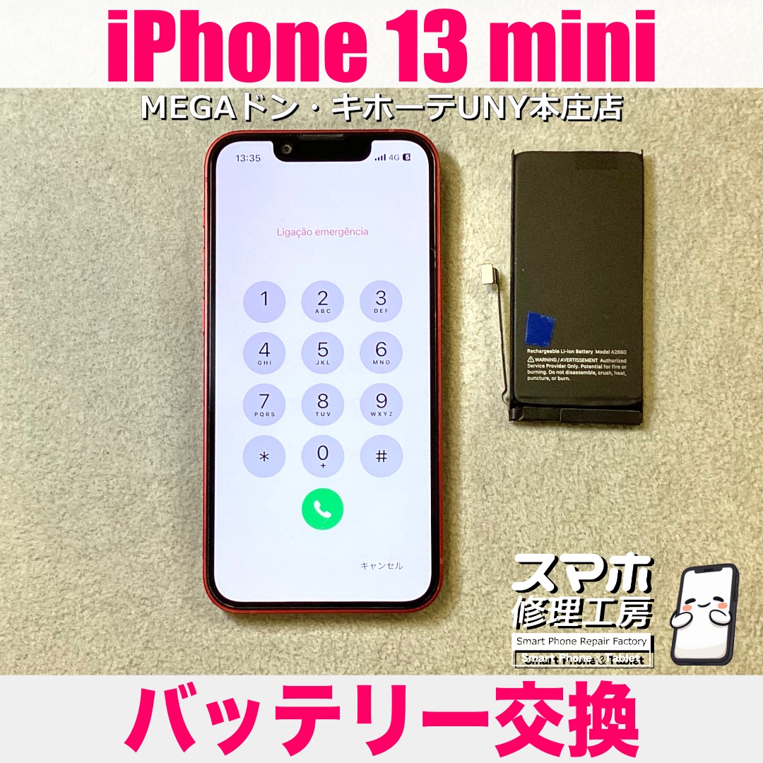 iPhone13mini(アイフォンサーティーンミニ)のバッテリー交換のご依頼になります💪😠