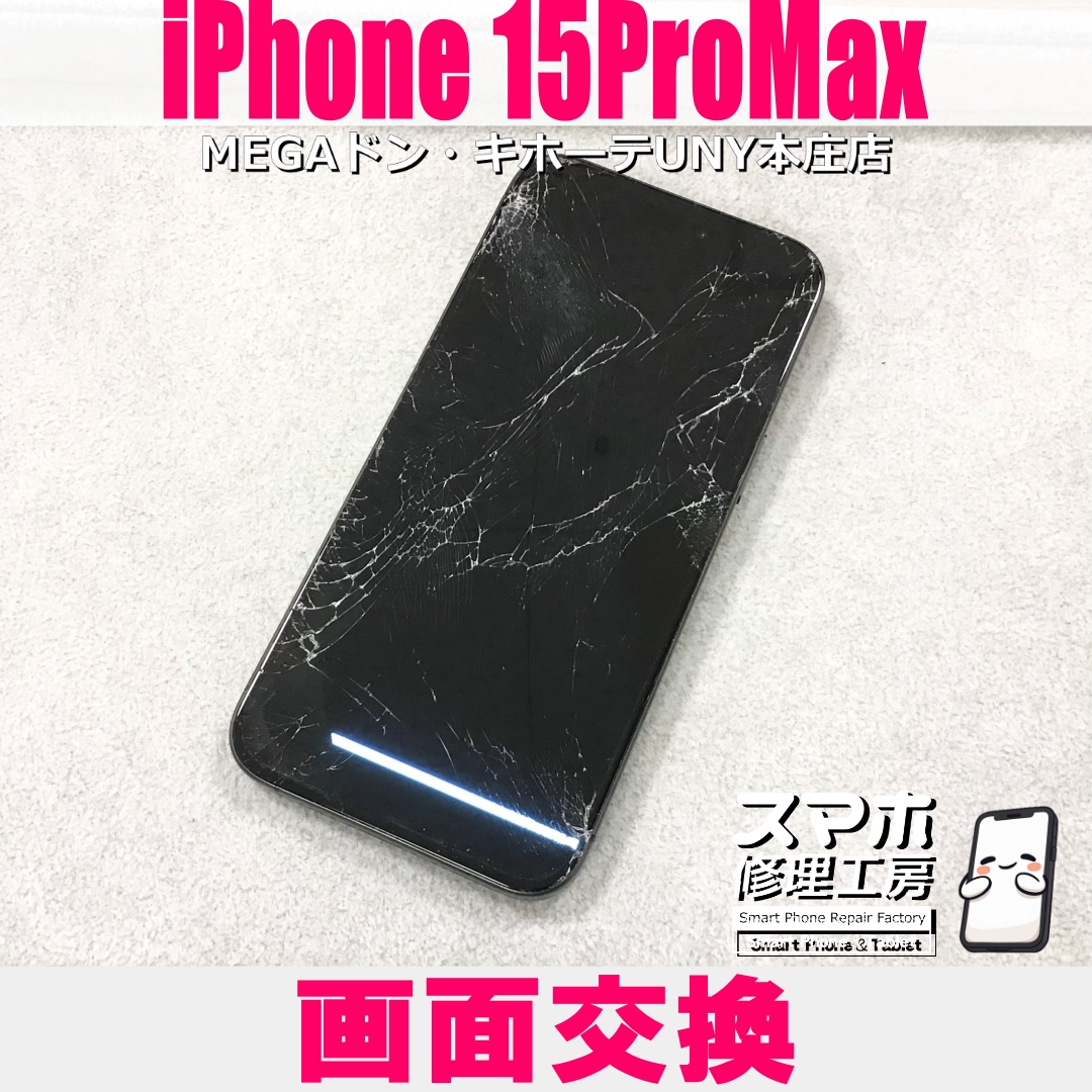 iPhone15ProMax(アイフォンフィフティーンプロマックス)の画面交換のご依頼になります💪