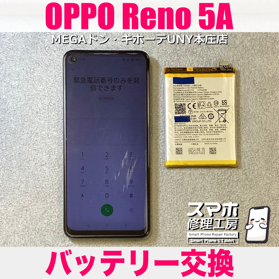 OPPO Reno5 A(オッポリノファイブエー)のバッテリー交換のご依頼になります💪