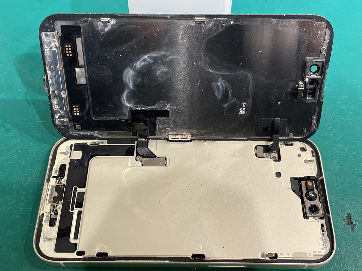 iPhone 15の水没による不良も、基板洗浄・乾燥作業や、該当部品の交換で復旧する可能性があります。
