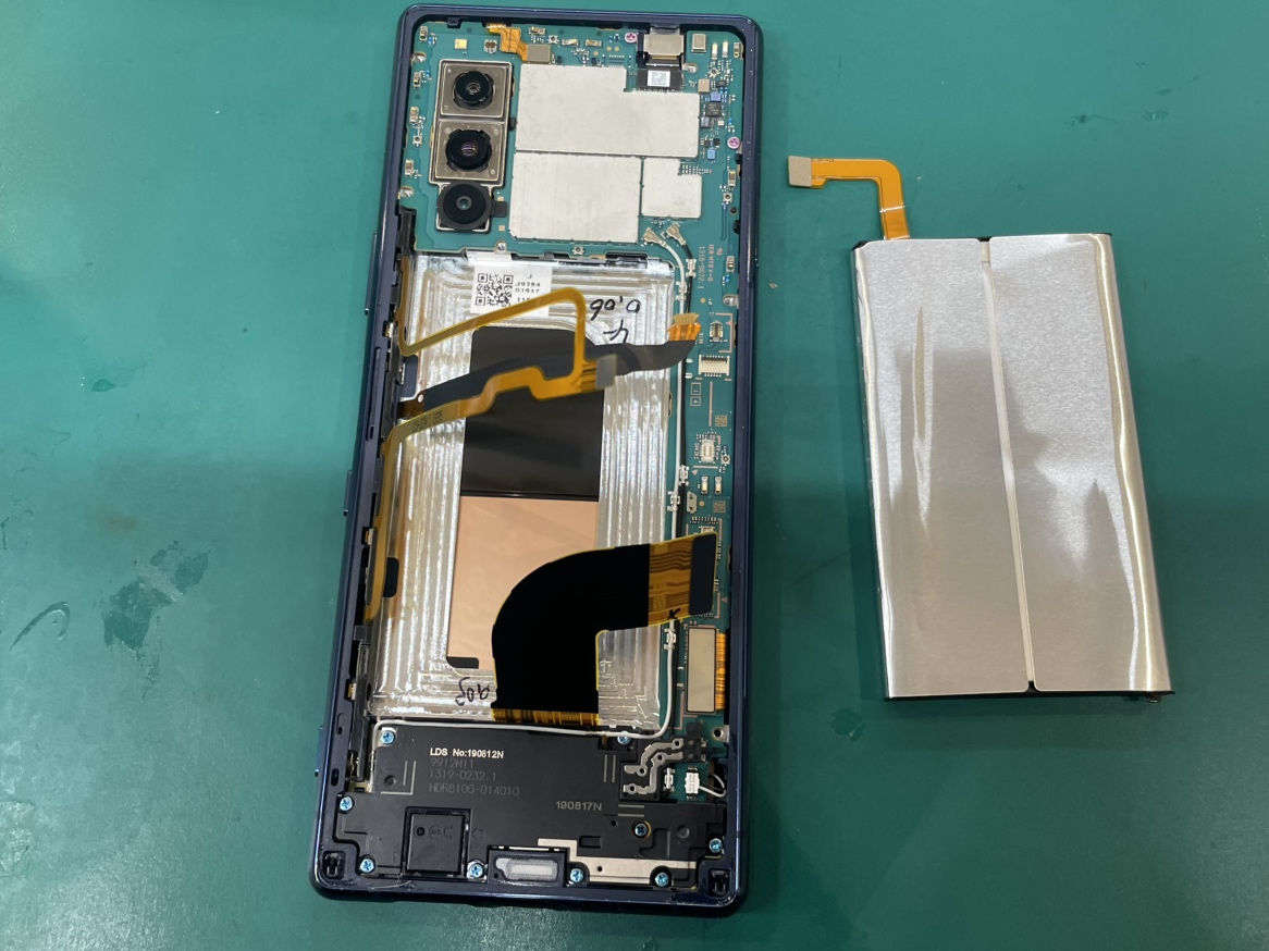 Xperia5は他のシリーズと比べてバッテリーの上に沢山のケーブルが通っています。