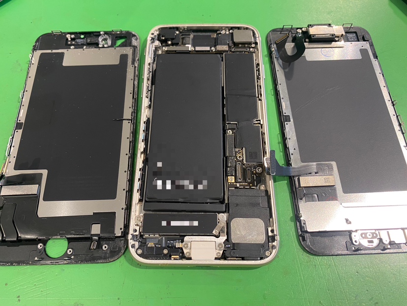 この機種は、割れた画面からホームボタンやイヤースピーカー、近接センサー、プレートなど複数のパーツを取り外し、新しい画面に移植する必要があります。