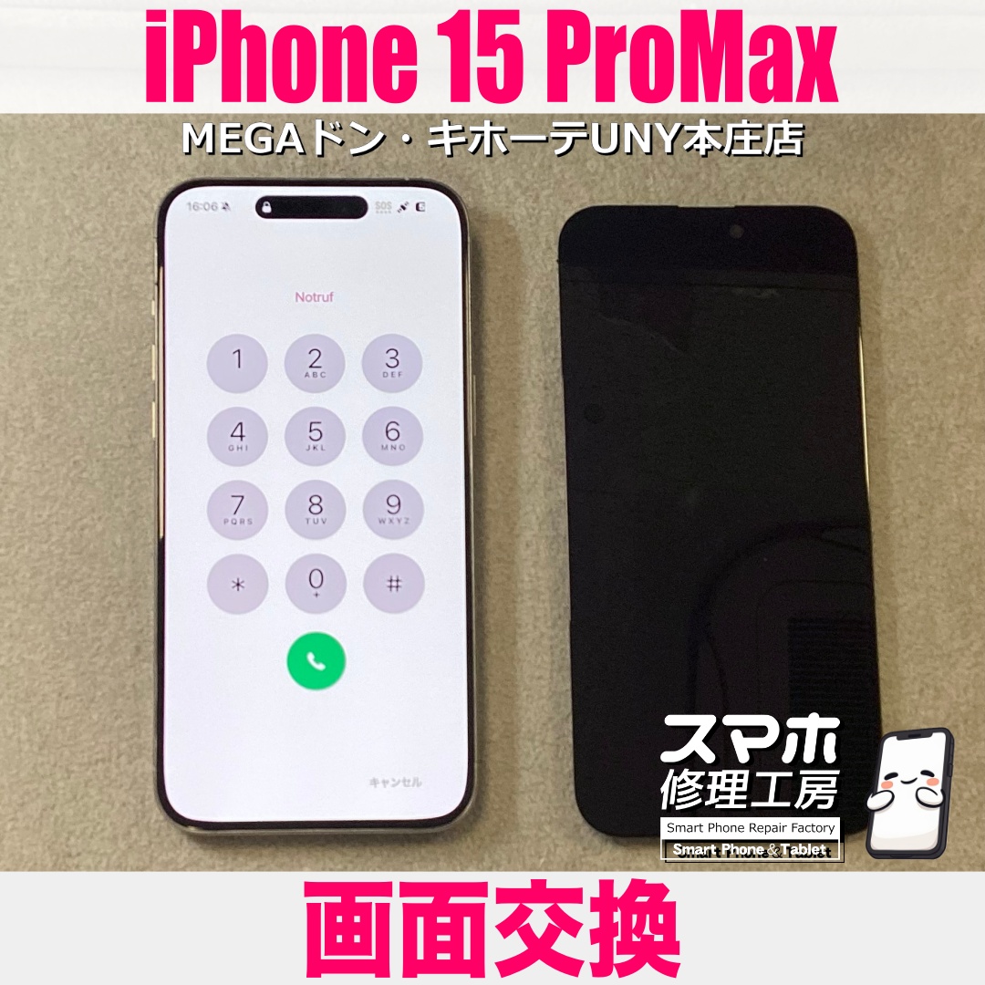 iPhone15ProMax(アイフォンフィフティーンプロマックス)の画面交換のご依頼になります💪
