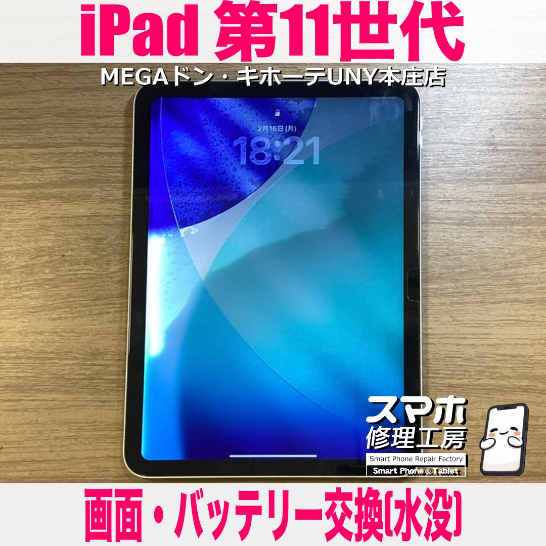 iPad 第11世代(アイパッドイレブン)の画面・バッテリー交換(水没)のご依頼になります💪