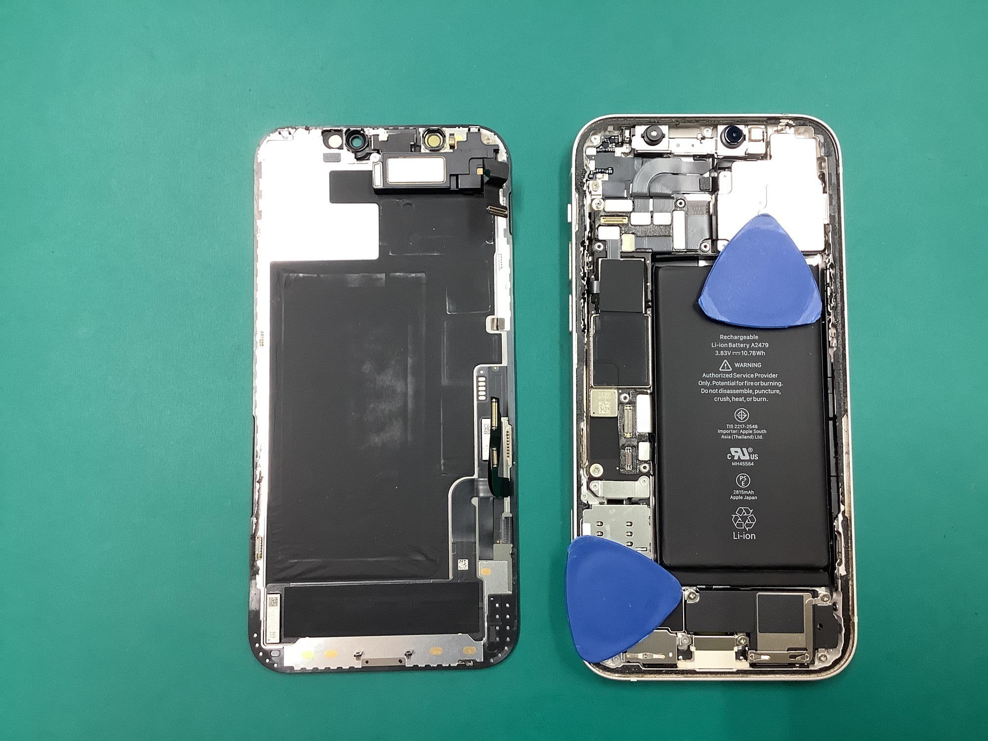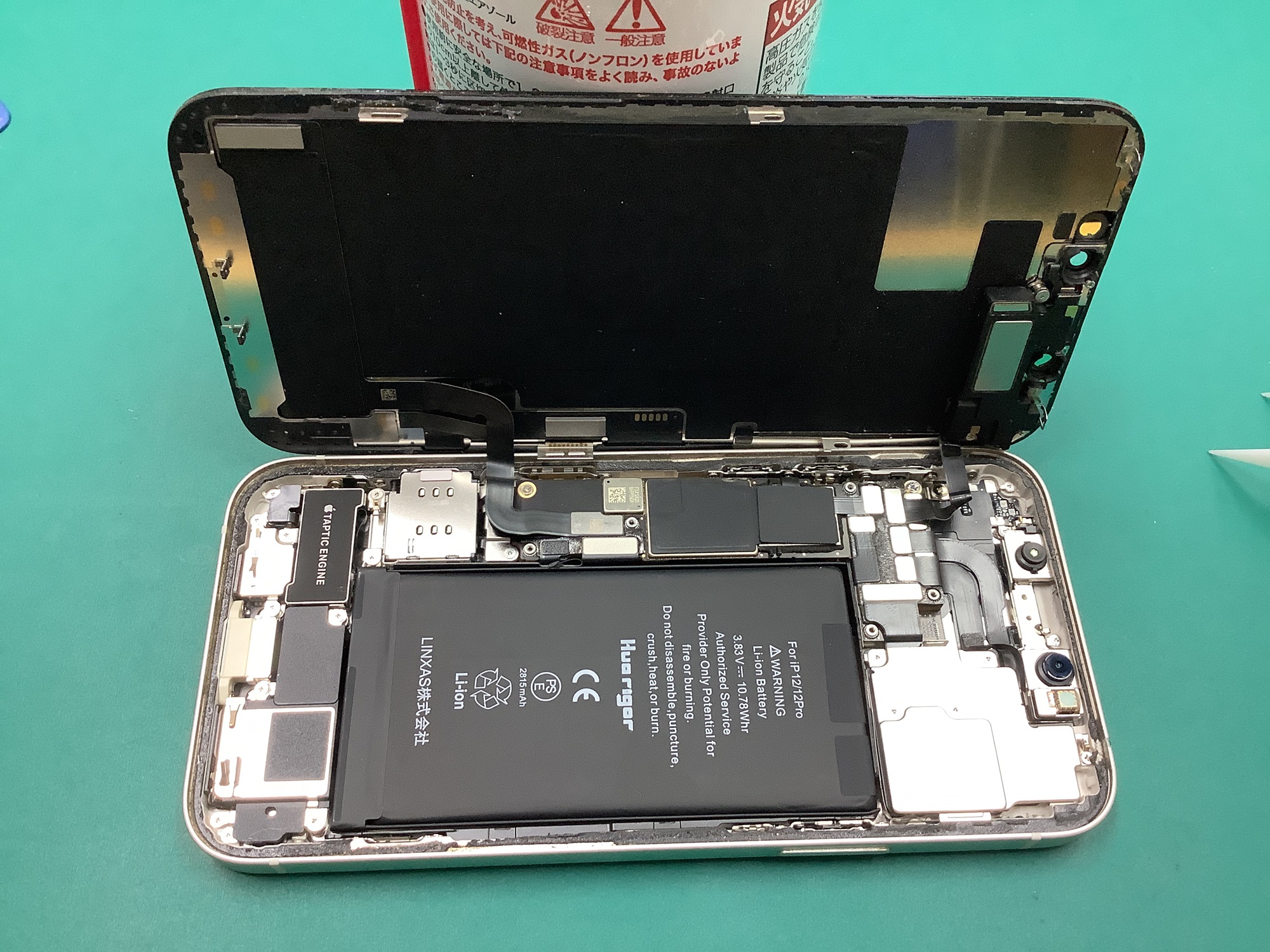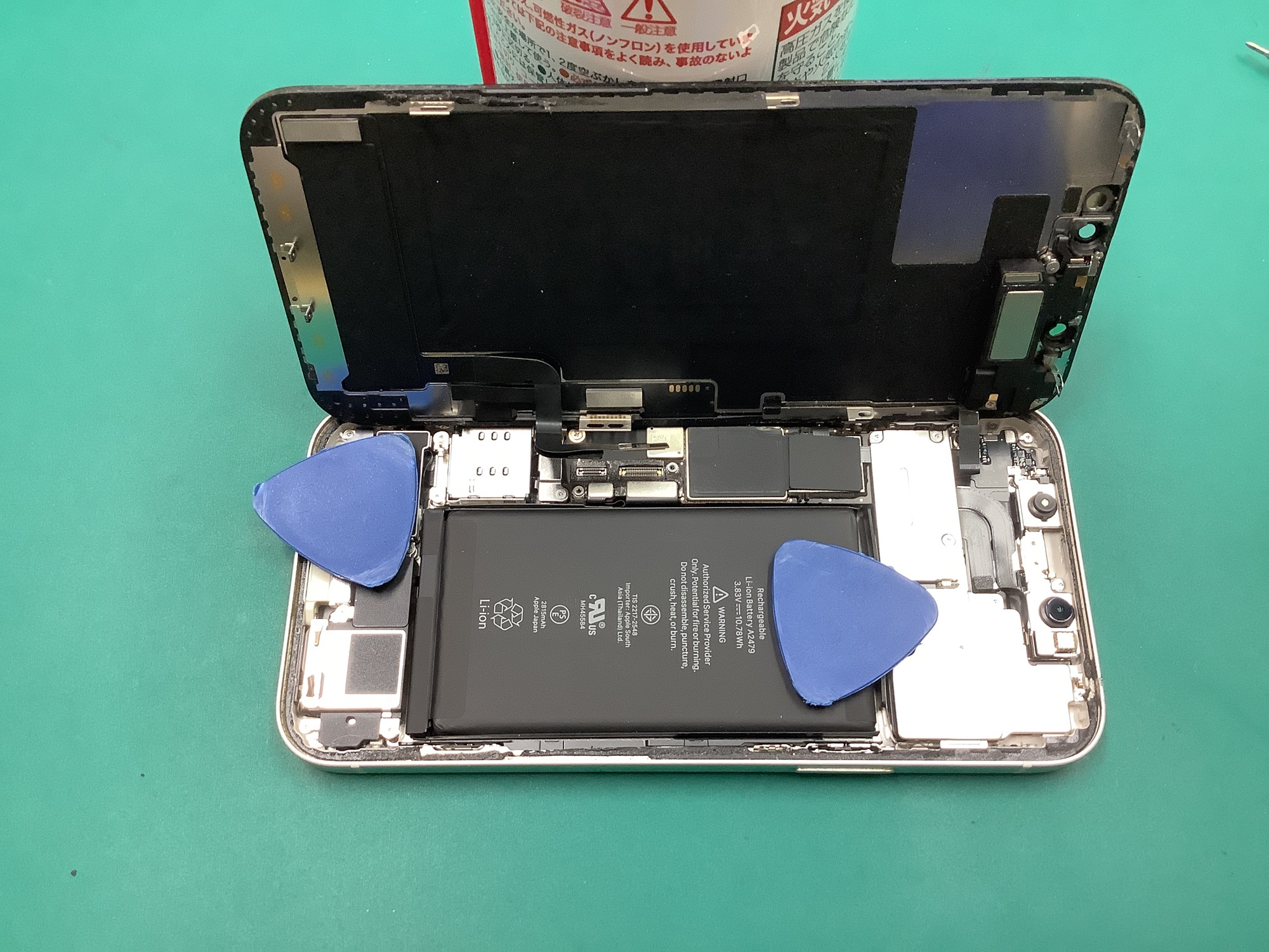 開いたら、バッテリー、画面のケーブルを外して、画面を取り外します。