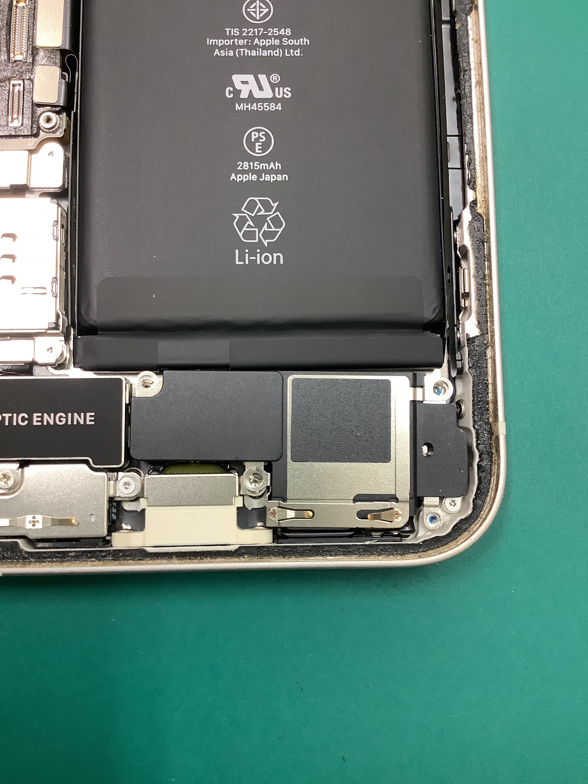 なんとか外れたので、残った粘着を除去して新しいバッテリーを貼り付けます。