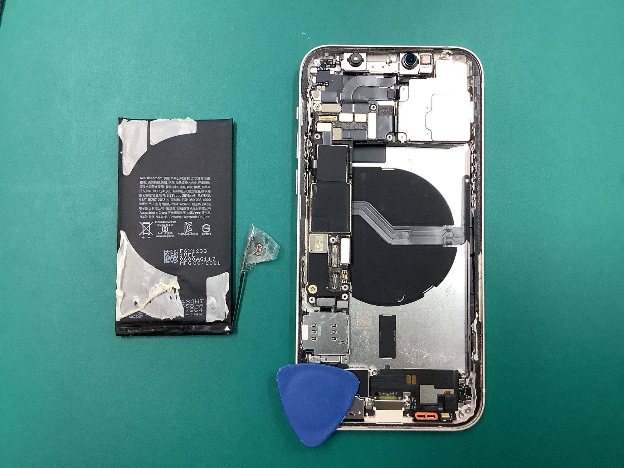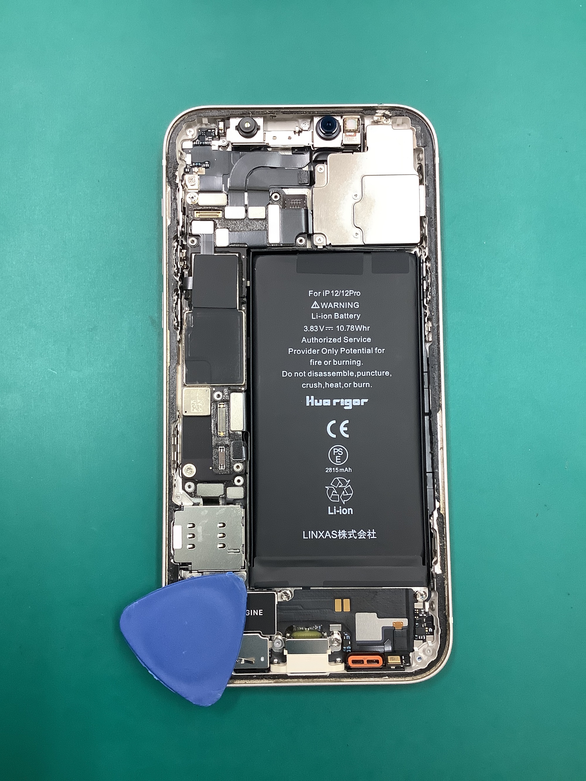 バッテリーの粘着と繋がっているタブがあるので、タブを剥がして引っ張り、粘着をはがしていく…のですが、これが途中で切れたりしてかなりムズカシイ!(今回も切れました・・)